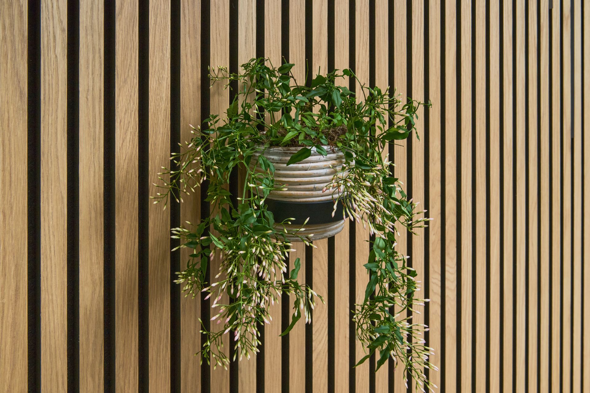 Breng je muur tot leven! De bloempotring van zwart gepoedercoat metaal zet je favoriete plant perfect in de schijnwerpers. Of het nu gaat om hangplanten, bloemen of kruiden - de bloempotring houdt je pot stevig op zijn plaats en laat hem visueel licht zweven. De set bevat een bloempotring met bijpassend bevestigingspunt.